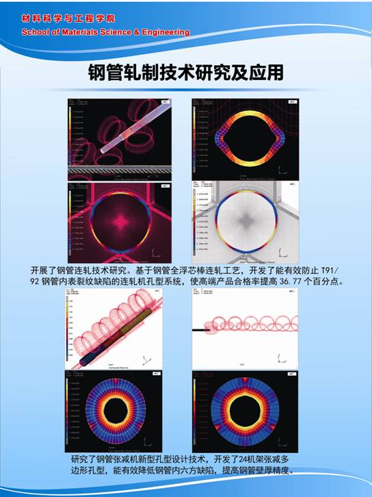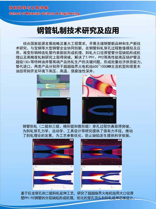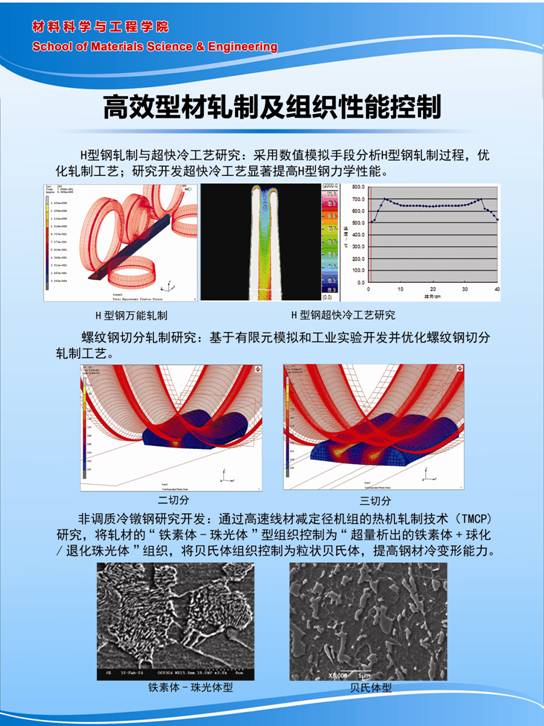 本方向以金属材料的塑性成形理论为基础,通过热模拟实验和仿真分析相结合的研究手段,构建探究金属材料轧制新技术及过程优化的学科平台。研究钢的轧制成形,重点是管、轮、型三类高端产品成形的关键技术,并凝炼出现代锥形辊穿孔和钢管(MM和MPM)连轧技术应用基础、车轮等环件成形过程和组织性能控制、高效节能型材产品控轧和控冷等科学问题,形成方向特色。